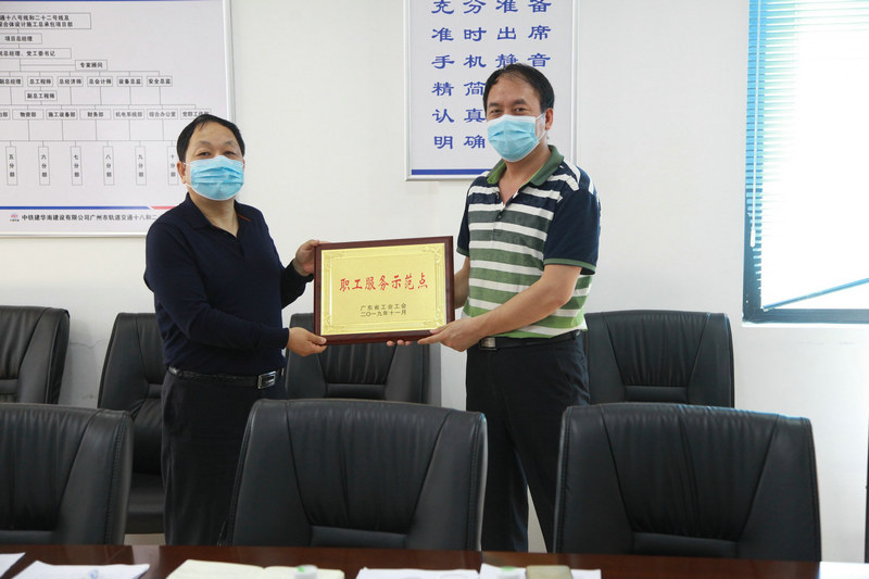 5月6日,廣東省工業(yè)工會(huì)委托中鐵建華南建設(shè)公司總承包部授給華南建設(shè)廣州地鐵五分部(中鐵十一局管段)2019年“職工服務(wù)示范點(diǎn)”獎(jiǎng)牌。