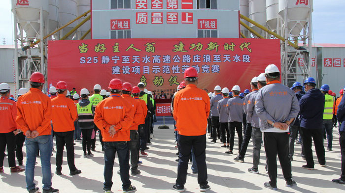 本網(wǎng)甘肅天水訊(通訊員 彭英)5月11日,在這初夏時(shí)節(jié)、萬(wàn)物崢嶸、惠風(fēng)和暢的美好日子里,天莊高速建設(shè)、設(shè)計(jì)、監(jiān)理、總包共計(jì)18家單位200余人,齊聚中鐵二十一局天莊高速TZZB6標(biāo)項(xiàng)目一號(hào)拌合站,隆重舉行天莊高速公路建設(shè)項(xiàng)目示范性勞動(dòng)競(jìng)賽啟動(dòng)儀式活動(dòng)。