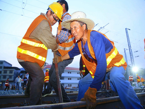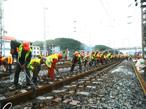 期間,為確保這項(xiàng)“短急快”工程順利完成,項(xiàng)目部持續(xù)加強(qiáng)工期節(jié)點(diǎn)的排兵布陣工作,并抽調(diào)大量機(jī)械設(shè)備及施工人員加班加點(diǎn)開展施工,集中力量進(jìn)行站改工程準(zhǔn)備作業(yè)及新增股道的鋪設(shè)。尤其在5月10日首個Ⅱ級封鎖施工中,項(xiàng)目經(jīng)理部全體人員齊身投入施工生產(chǎn)一線參與會戰(zhàn),“男將”“女兵”們手持鐵錘、扎絲等系列工具,同大部隊(duì)一同戰(zhàn)斗了10余小時,舉動受到了路局、其他參建單位及當(dāng)?shù)匕傩盏囊恢路Q贊,“來之能戰(zhàn),戰(zhàn)之能勝”的作風(fēng)再次擦亮了一局西南鐵軍的金字名牌。