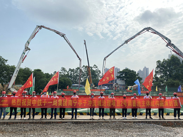 5月13日,中鐵十一局二公司南寧亭子沖流域治理2#調(diào)蓄池順利封頂,這是該項(xiàng)目年后復(fù)工復(fù)產(chǎn)關(guān)鍵性節(jié)點(diǎn)勝利,也是自去年6月開工以來首個(gè)調(diào)蓄池封頂,為接下來其他調(diào)蓄池順利進(jìn)展奠定了堅(jiān)實(shí)基礎(chǔ)。