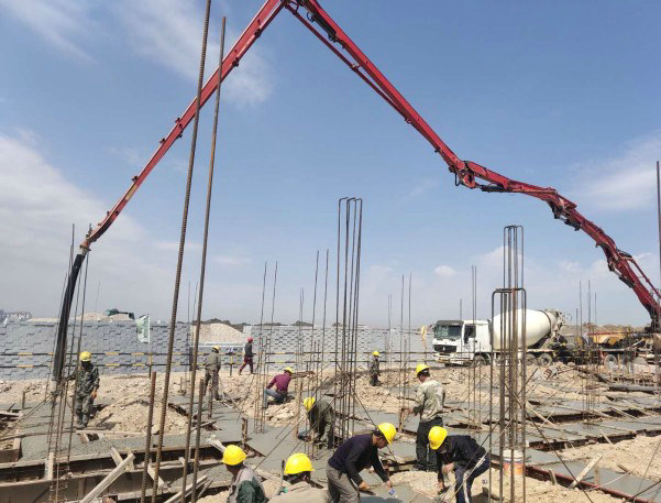 “五月人間揮汗雨”,在濱州北海魏橋鐵路專用線項目現(xiàn)場,一輛滿載混凝土的罐車疾馳到現(xiàn)場,混凝土泵車早已準備就緒,現(xiàn)場負責人指揮泵車進行澆筑作業(yè);不遠處,挖掘機正在進行基坑開挖施工,壓路機對換填砂土進行夯實,鋼筋綁扎、模板支護……各工種銜接有序,現(xiàn)場一派繁忙景象。
