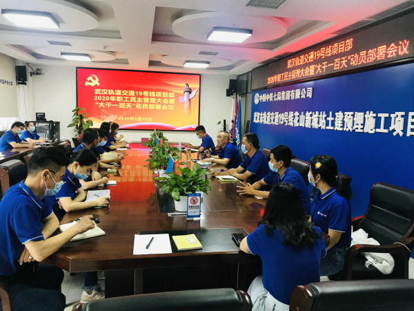 5月25日,中鐵七局武漢軌道交通19號(hào)線項(xiàng)目部召開2020年職工民主管理大會(huì)暨“大干100天”動(dòng)員部署會(huì)議。會(huì)議由項(xiàng)目黨支部書記王斌波主持,共31人參加,其中花園站改項(xiàng)目人員通過網(wǎng)絡(luò)視頻會(huì)議形式同步參會(huì)。