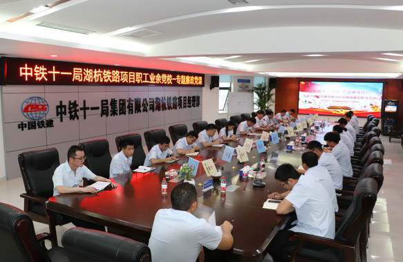 同日,下午4點(diǎn),中鐵十一局集團(tuán)湖杭鐵路項(xiàng)目邀請(qǐng)了德清縣黨校副校長(zhǎng)姚文榮開(kāi)展了一場(chǎng)“知敬畏守底線 嚴(yán)監(jiān)管強(qiáng)執(zhí)行”全力打造“湖杭精神 湖杭速度 湖杭擔(dān)當(dāng)”的主題廉政黨課,為湖杭鐵路建設(shè)筑牢思想防線。