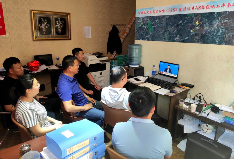 十三屆全國人大三次會議是在疫情防控常態(tài)化的特殊情況下召開的,對2020年各項工作做出部署,為推動確保完成決戰(zhàn)決勝脫貧攻堅目標(biāo)任務(wù),全面建設(shè)小康社會增強(qiáng)了信心,鼓舞了干勁。正在黑龍江省百大項目綏大公路工程參戰(zhàn)的全體職工備受鼓舞,他們在繁忙的施工生產(chǎn)中抽出時間,組織20余名職工通過電視、手機(jī)、收音機(jī)等多種形式認(rèn)真聆聽和收看大會盛況。項目黨支部書記王寶和表示,今后一個時期要把學(xué)習(xí)領(lǐng)會“兩會”精神作為首要的政治任務(wù),并結(jié)合項目實際抓好貫徹落實。要迎難而上、埋頭苦干、求真務(wù)實、直面挑戰(zhàn),深化責(zé)任擔(dān)當(dāng),搶抓黃金施工期,在疫情防控常態(tài)化的形勢下,全力推進(jìn)工程進(jìn)度、安全、質(zhì)量、環(huán)保等各項指標(biāo)的完成,深化“三保兩創(chuàng)一防”重點工程勞動競賽活動,為企業(yè)的發(fā)展而戰(zhàn),為項目的信譽(yù)而戰(zhàn)。“要把認(rèn)真貫徹落實好‘兩會’精神,體現(xiàn)在高起點、高標(biāo)準(zhǔn)、高速度、高質(zhì)量,建設(shè)好綏大公路項目上,只爭朝夕、不尚空談、守土盡責(zé),不折不扣的兌現(xiàn)節(jié)點工期目標(biāo)及向業(yè)主做出的承諾,為推動企業(yè)高質(zhì)量發(fā)展做出應(yīng)有的貢獻(xiàn)”項目經(jīng)理李百成向全體參戰(zhàn)職工發(fā)出的動員令擲地有聲。