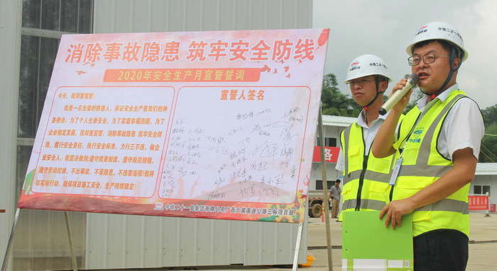 儀式上,各工區(qū)及施工隊負責人作表態(tài)發(fā)言,全體成員做安全承諾,并鄭重在安全月主題宣傳誓詞板上簽字,切實表達出防范安全隱患、保障生產(chǎn)工作的信心與決心。在后續(xù)施工中,項目部將根據(jù)“消除事故隱患,筑牢安全防線”的安全主題,開展人人爭當安全員、安全知識競賽、安全管理大家談、安全隱患應(yīng)急演練等特色活動,組織各部門骨干定期進行安全隱患大排查和隱患治理回頭看,形成隱患查處閉合,使安全管理口號落地生根。