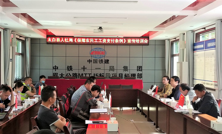 本站寶雞太白訊:5月27日,陜西省太白縣人社局副局長高寶宏、交通運輸廳副局長王京京一行蒞臨中鐵十一局四公司眉太公路4標、5標指導工作,組織項目部員工及各施工班組負責人學習貫徹《保障農(nóng)民工工資支付條例》、農(nóng)民工實名制工資管理平臺預警監(jiān)管機制,迎接國家保障農(nóng)民工工資支付考核工作。