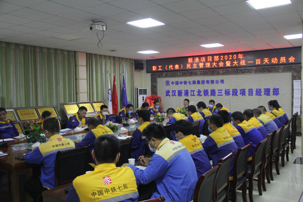5月28日晚,中鐵七局武漢新港項(xiàng)目部召開2020年職工代表民主管理大會(huì)暨大戰(zhàn)一百天動(dòng)員會(huì),會(huì)議由項(xiàng)目部工會(huì)主席龔元林主持,項(xiàng)目部領(lǐng)導(dǎo)班子、各部門負(fù)責(zé)人及職工代表,共31人參加。