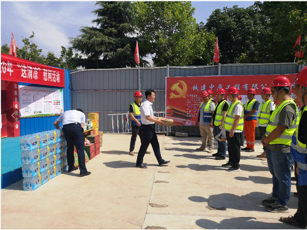 烈日炎炎,驕陽似火。鄭州地區(qū)已逐漸進(jìn)入高溫酷暑季節(jié),公司為進(jìn)一步關(guān)心基層職工及勞務(wù)人員的身體健康,傳遞公司對一線施工人員的倍加關(guān)愛,積極改善一線施工人員的夏季施工條件,6月8日上午,鐵建中原工程有限公司紀(jì)委書記、工會主席聞紀(jì)華一行到鄭州文創(chuàng)園區(qū)市政道路項目部,為長期奮戰(zhàn)在施工一線的職工及勞務(wù)人員送去礦泉水、冰糖、藿香正氣液、清涼油等防暑降溫驅(qū)蚊物品,正式拉開了“大干一百天,送清涼,鼓干勁”慰問活動的帷幕。