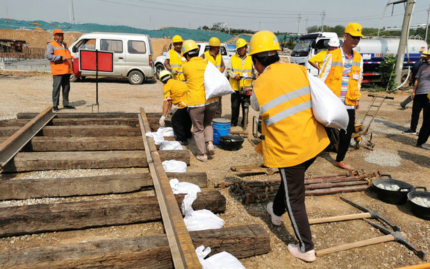此次應(yīng)急演練以頂進(jìn)箱涵施工時鄰近營業(yè)線上行線西側(cè)深基坑由于持續(xù)下雨導(dǎo)致基坑邊坡坍塌,影響路基穩(wěn)定,危及京廣線上行線行車安全為背景。9點5分,演練正式開始。線路檢查組、養(yǎng)護(hù)組、安全防護(hù)組、物資供應(yīng)組和后勤通訊組5組成員通力配合,采取有效路基加固措施,對線路幾何尺寸進(jìn)行恢復(fù),對路基及線路沉降進(jìn)行觀測?,F(xiàn)場實施了上報險情、應(yīng)急啟動、組織搶險、善后處理、測量線路等多個環(huán)節(jié)。一個多小時的“搶險”過程緊張有序,有條不紊,確保各個環(huán)節(jié)安全、有序、及時、正確,達(dá)到了演練的預(yù)期目的。