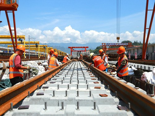 (李艷春 譚帥 高明)6月9日9時(shí)09分,成都局集團(tuán)中嘴車站重端新建的路基上喝彩陣陣,鞭炮齊鳴,隨著工人們將最后一幅夾板有序地連接在兩節(jié)鋼軌的接頭處,標(biāo)志著渝懷鐵路涪秀二線涪陵至中嘴段軌道與橋梁工程全部實(shí)現(xiàn)貫通,承諾目標(biāo)圓滿兌現(xiàn),向8.10第一階段通車目標(biāo)又邁出了最重要的一步。