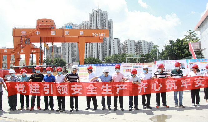 6月11日,在中鐵建華南建設廣州地鐵十八和二十二號線工地上,一場別開生面的安全生產(chǎn)月活動啟動儀拉開帷幕,廣州市市政安全質(zhì)量監(jiān)督站、廣州地鐵、中鐵建華南建設及中鐵十八局集團、中鐵二院等單位以黨建共建的方式,共同啟動了十八和二十二號線九分部(中鐵十八局管段)的安全生產(chǎn)月活動。