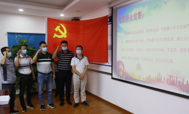 這次啟動儀式由總承包部黨工委副書記張楠主持。會上,九分部一工區(qū)項目經(jīng)理吳穎寧匯報了工區(qū)施工生產(chǎn)概況、當前節(jié)點情況、重難點工程推進以及安全生產(chǎn)月活動方案,市質(zhì)監(jiān)站技術部張林榮偉介紹了質(zhì)監(jiān)站有關情況,并就這次以黨建引領方式開展的安全生產(chǎn)月活動進行了重點說明,主要包括落實活動主題,深化學習教育,進一步健全安全生產(chǎn)責任制管理,有效加強安全防范等相關內(nèi)容。啟動儀式上還舉行了現(xiàn)場授書儀式和黨員宣誓儀式,黃悅波代表市質(zhì)監(jiān)站授書,楊春明代表九分部接受了《地下工程安全管理規(guī)范性文件匯編》、《2020年安全生產(chǎn)管理文件匯編》等相關圖書。市質(zhì)監(jiān)站、廣州地鐵、華南建設總承包部以及中鐵二院、中鐵十八局等單位的黨員代表在莊嚴的黨旗下面舉行了安全生產(chǎn)月活動的宣誓儀式。