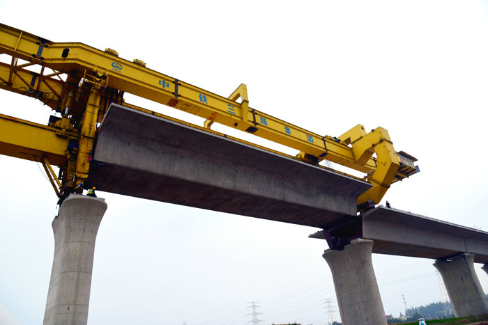 線橋公司承擔(dān)標(biāo)段內(nèi)56榀雙線箱梁及932榀單線箱梁的架設(shè)任務(wù),自2020春節(jié)后進(jìn)場(chǎng)以來(lái),積極復(fù)工,做到生產(chǎn)防疫兩手抓,迅速完成了架橋機(jī)、運(yùn)梁車(chē)拼裝成功并吊裝上橋并達(dá)到架梁狀態(tài),結(jié)合“大干100天”勞動(dòng)競(jìng)賽的要求,項(xiàng)目部迅速行動(dòng),抓住當(dāng)前有利時(shí)機(jī),全力以赴打好達(dá)產(chǎn)超產(chǎn)攻堅(jiān)戰(zhàn),咬定目標(biāo),通過(guò)加強(qiáng)施工組織,合理調(diào)配機(jī)械設(shè)備及物資供應(yīng),實(shí)行現(xiàn)場(chǎng)領(lǐng)導(dǎo)跟班制度,明確職責(zé),專人負(fù)責(zé)提、運(yùn)、架過(guò)程中的監(jiān)督、管控,確保了箱梁的安全架設(shè)。