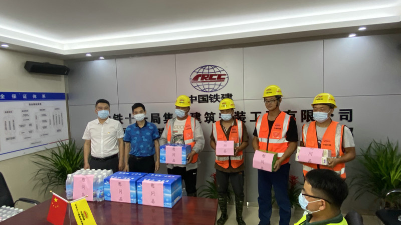 中國鐵建·御湖項目領導將慰問品送到各個勞務工班的手中