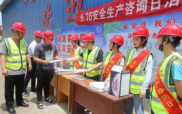 本網(wǎng)安徽黃山訊(通訊員 王克亮 李彥良)6月16日,為把安全生產(chǎn)月活動推向高潮,在全國第19個“全國安全宣傳咨詢?nèi)?rdquo;之際,中鐵二十一局三公司池祁項目部圍繞全國安全月“消除事故隱患,筑牢安全防線”主題,組織開展形式多樣,內(nèi)容豐富的安全宣傳咨詢?nèi)栈顒印?br /> 為切實(shí)把活動開展的有聲有色,項目部組織部分人員佩戴宣傳緞帶,深入施工現(xiàn)場和社區(qū)街道開展安全宣傳咨詢,與當(dāng)?shù)厝罕姾蛥⒔▎T工交流互動,群答安全應(yīng)急逃生,避災(zāi)減災(zāi),如何應(yīng)對突發(fā)安全事件等相關(guān)咨詢的問題,特別給前來咨詢有關(guān)液化氣在夏季安全使用常識和防蛇咬傷的措施,讓當(dāng)?shù)厝罕姾蛦T工有了進(jìn)一步了解和認(rèn)識。在現(xiàn)場還展示了如何使用滅火器,災(zāi)后處置等技能,引來了大家的駐足觀看,近距離感受安全防范操作技能,營造全社會“關(guān)注安全、重視安全、參與安全”的濃厚氛圍,促進(jìn)安全生產(chǎn)持續(xù)向好。