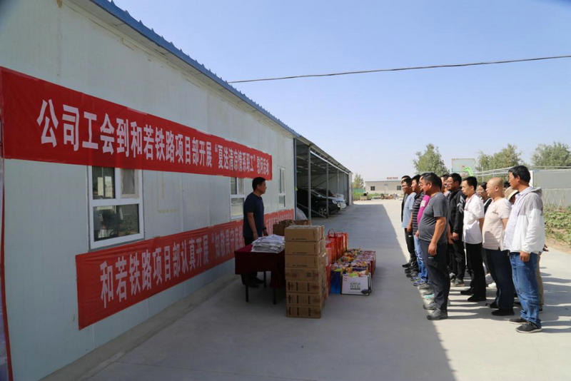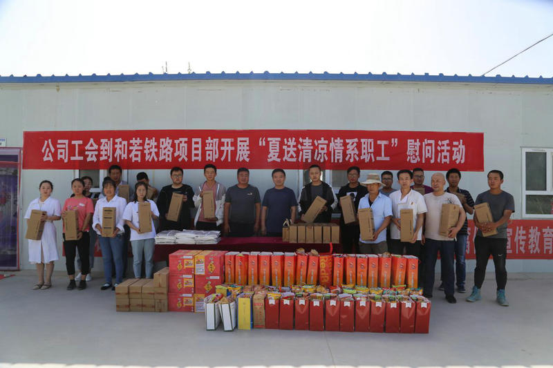 6月15日,中鐵二十一局四公司黨委副書(shū)記、紀(jì)委書(shū)記杜長(zhǎng)松代表公司工會(huì)到和若鐵路項(xiàng)目部開(kāi)展“夏送清涼·情系職工”慰問(wèn)活動(dòng),給奮戰(zhàn)在一線的廣大職工送去公司的關(guān)懷。