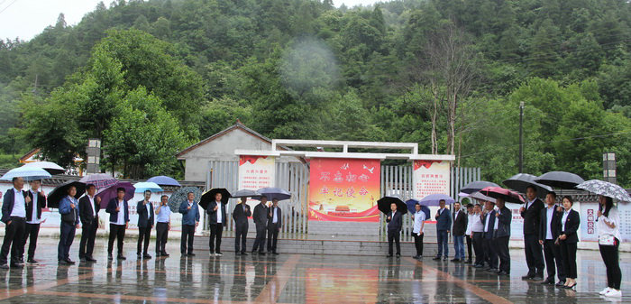 圖為參觀太陽寺 盡管下著大雨,但這并不影響大家參觀兩當兵變紀念館的熱情。來到兩當兵變紀念館,在講解員的引導(dǎo)下,項目負責人魏惠民帶領(lǐng)全體黨員面向鮮紅黨旗鄭重宣誓,重溫入黨誓詞,堅定入黨初心。隨后,大家依次參觀了紀念館兩當兵變事件、歷史傳承、兩當兵變主要領(lǐng)導(dǎo)人生平三個展區(qū)。仔細聆聽了“兩當兵變”經(jīng)過,大家懷著崇敬之情,瞻仰了一件件文物,并凝神駐足在一組組翔實的歷史資料和一幅幅鮮活生動的歷史畫卷前,認真看、仔細聽、細心問,接受了一次深刻的革命傳統(tǒng)教育。當天大家還參觀了兩當兵變部隊改編地——太陽寺,再一次重溫歷史,緬懷先烈,接受了革命傳統(tǒng)教育。