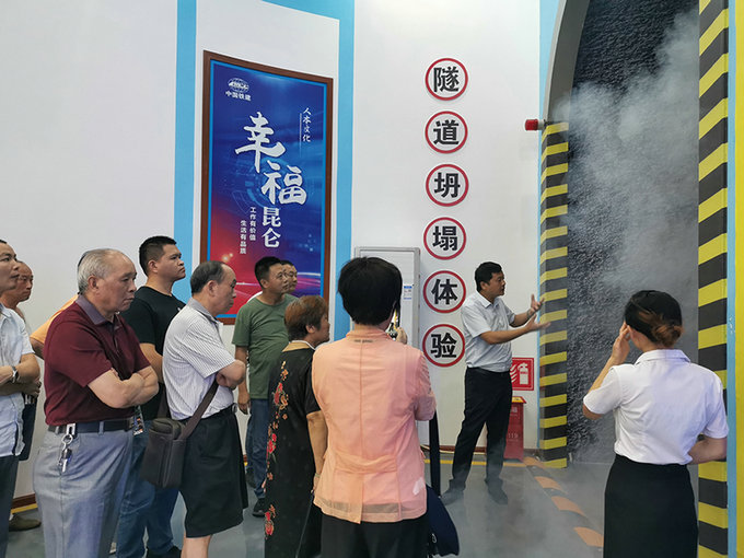 項(xiàng)目公司安質(zhì)部部長(zhǎng)張玉峰介紹隧道坍塌逃生模擬演示