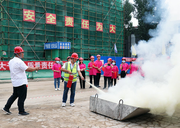 隨后,大家一起來(lái)到車(chē)軸山中學(xué)改造提升工程項(xiàng)目施工現(xiàn)場(chǎng)進(jìn)行參觀。改造項(xiàng)目安監(jiān)部部長(zhǎng)給大家詳細(xì)講解了滅火器的使用方法。通過(guò)講解和演示,提升了雙方的安全生產(chǎn)意識(shí)和應(yīng)急避險(xiǎn)能力。