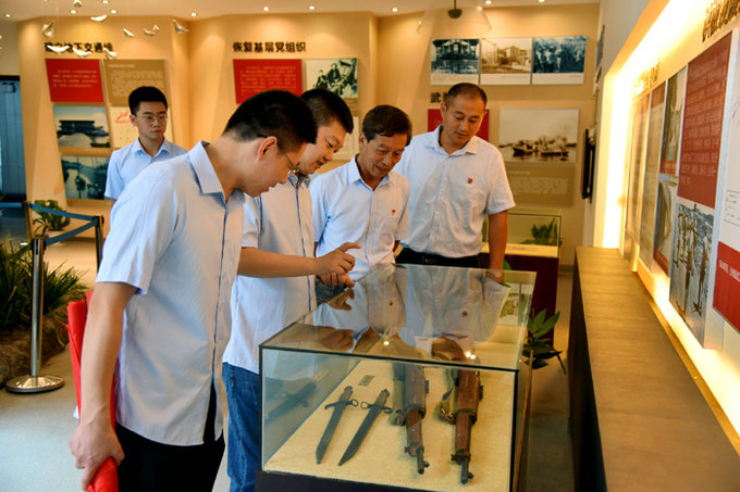 為致敬中國共產(chǎn)黨成立99周年,學(xué)習(xí)革命先輩的光榮傳統(tǒng),2020年7月1日,南沿江項(xiàng)目黨團(tuán)員赴沙洲縣抗日民主政府紀(jì)念館,重溫我們生活的這片熱土上曾經(jīng)的那段沙洲軍民可歌可泣的抗戰(zhàn)歷史,領(lǐng)略沙洲抗日先烈們英勇無畏的光輝形象。沙洲縣抗日民主政府紀(jì)念館由張家港人民政府投資建成,紀(jì)念館以文字、圖像、照片、塑像、實(shí)物為主要載體,以聲、光、電等現(xiàn)代傳媒技術(shù)為輔助手段,形象展現(xiàn)了勤勞、勇敢、智慧的沙洲英雄兒女在中國共產(chǎn)黨領(lǐng)導(dǎo)下,不屈不撓、同仇敵愾,共御外侮的光輝足跡。