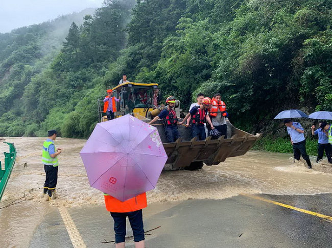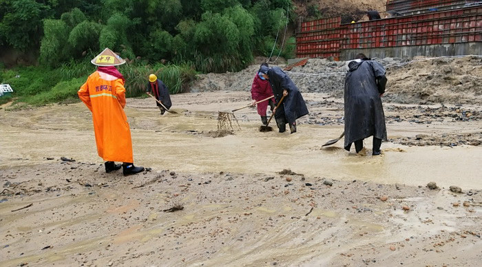 清理樹木??????? 205國道多處山體滑坡道路堵塞,樹木、電線桿被洪水沖倒卡在路中央,項目部先后調(diào)派挖機(jī)、裝載機(jī)等大型機(jī)械設(shè)備數(shù)臺、10多名員工前往各個交通要道、村道進(jìn)行搶險救援,對多處塌方道路進(jìn)行清理,疏通清理堵塞道。經(jīng)過6小時奮戰(zhàn),國道恢復(fù)正常運(yùn)行,人員安全撤離危險區(qū)域。