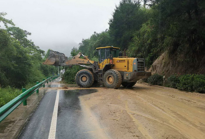 裝載機(jī)清理國道滑坡體