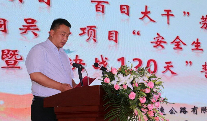 陜西省交通運(yùn)輸廳建設(shè)處副處長(zhǎng)田巨峰、銅川市公路管理局局長(zhǎng)寇軍平、渭南市交通運(yùn)輸局副局長(zhǎng)李宏德、陜西省交通運(yùn)輸廳質(zhì)監(jiān)站辦公室主任烏磊、安全科科長(zhǎng)陳瑞琦、陜西省高速集團(tuán)PPP項(xiàng)目監(jiān)管組吳潤(rùn)龍科長(zhǎng)等應(yīng)邀參加了大會(huì)。項(xiàng)目公司、總承包部全體管理人員、合銅項(xiàng)目和吳華項(xiàng)目各參建單位共計(jì)160余人參加了大會(huì)。