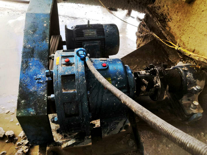 宏基公司使用的砂石分離機原設計的電動機、減速機要通過傳動軸進行“硬”連接,遇到過載情況,經常會出現(xiàn)電機損毀、減速箱齒輪被打、傳動軸斷裂故障,造成該砂石分離機趴窩,經常一出現(xiàn)問題就得好幾天時間維修。這在很大程度上影響了罐車清洗出的混凝土、攪拌站產生的落地混凝土的回收再利用。