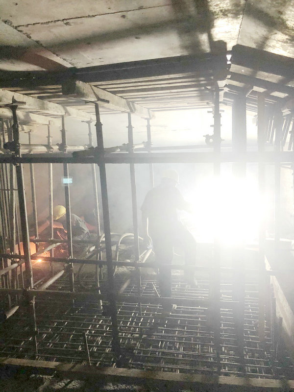 圖為邊跨段進行電焊作業(yè) 四支河大橋邊跨合龍段順利完工,吹響了該橋最后工期決戰(zhàn)百米沖刺的哨聲,建設(shè)者有信心和決心,克服重重困難,按期、安全、高效完成該橋的主體施工剩余工程施工,為項目按期收官創(chuàng)造有利的工期條件。