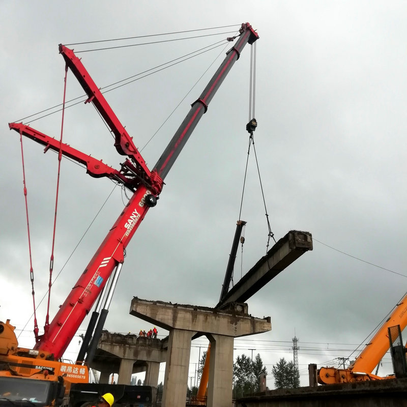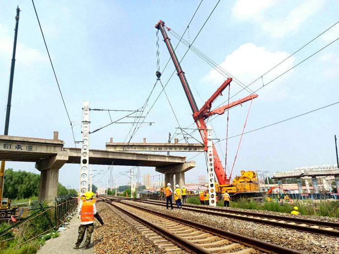 承擔(dān)施工任務(wù)的中鐵二十三局集團(tuán)二公司搶前抓早、精心組織,施工前結(jié)合現(xiàn)場(chǎng)實(shí)際,制定了嚴(yán)密的施工組織方案和應(yīng)急預(yù)案,對(duì)參戰(zhàn)人員進(jìn)行了既有線施工安全知識(shí)培訓(xùn)。組織專門(mén)力量對(duì)跨線孔箱梁提前切割分離,掃除影響施工障礙。同時(shí)調(diào)集一臺(tái)500噸和兩臺(tái)110噸重型液壓吊車(chē),提前進(jìn)行荷載試驗(yàn),確保了準(zhǔn)備工作的萬(wàn)無(wú)一失。在兩天的二級(jí)線路封鎖施工中,克服了高空跨線作業(yè)安全風(fēng)險(xiǎn)疊加、電力接觸網(wǎng)林立、陰雨連綿等不利因素,嚴(yán)格標(biāo)準(zhǔn)化作業(yè)不走樣,把住箱梁吊裝、線路防護(hù)、吊車(chē)運(yùn)行關(guān),均安全正點(diǎn)開(kāi)通線路,順利完成了7片箱梁的拆除任務(wù),為下步橋梁施工贏得了寶貴時(shí)間。