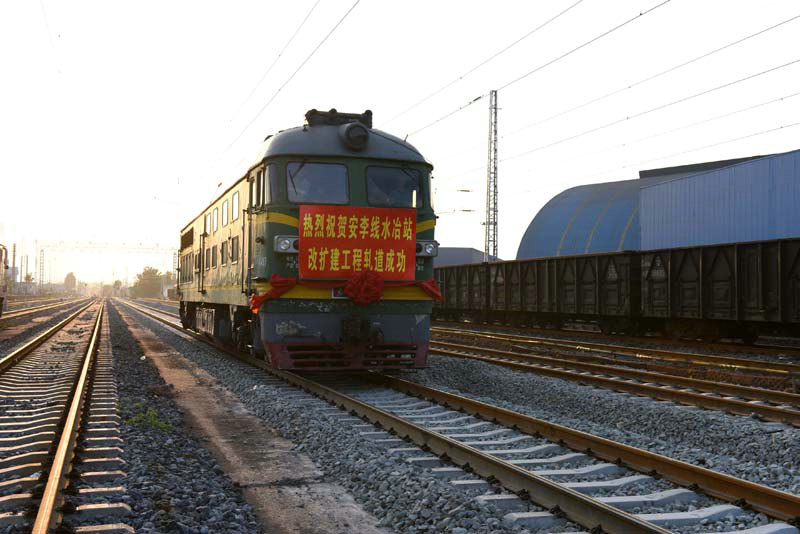 2020年7月20日18:30,一臺(tái)東風(fēng)內(nèi)燃機(jī)車身披大紅花緩緩駛?cè)胨闭拘陆?道進(jìn)行機(jī)車壓道作業(yè)。標(biāo)志著由通號(hào)電氣化局中原公司承建的水冶站場(chǎng)改造新4道具備竣工驗(yàn)收及運(yùn)營(yíng)條件。