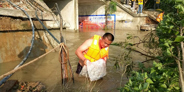 險(xiǎn)情就是命令。針對(duì)阜六線路塹邊坡溜坍,阜陽(yáng)工務(wù)段防洪辦立即啟動(dòng)應(yīng)急預(yù)案,迅速部署,同時(shí)聯(lián)系合肥供電段調(diào)度、霍邱供電車間,向其通報(bào)水害情況。15時(shí)55分由霍邱線路車間牽頭組織供電、電務(wù)等部門共120多人攜帶鐵鏟、大錘、木樁、編織袋等搶險(xiǎn)料具到達(dá)現(xiàn)場(chǎng)。16:00分,副段長(zhǎng)朱華東趕到現(xiàn)場(chǎng),在查看現(xiàn)場(chǎng)險(xiǎn)情后,制定應(yīng)急措施進(jìn)行搶險(xiǎn)。