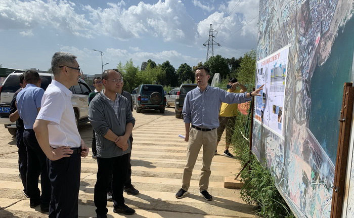 圖為盤龍區(qū)副區(qū)長劉曉航介紹東干渠分洪隧洞項目建設情況為您推薦