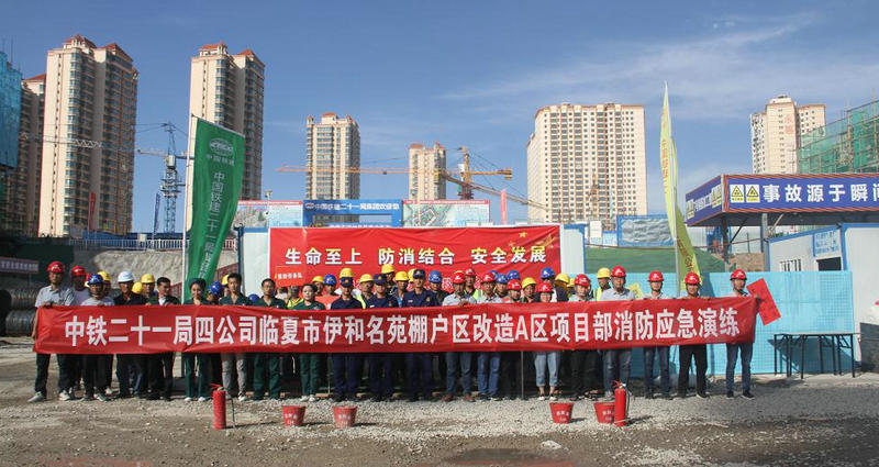 7月28日,中鐵二十一局四公司臨夏市伊和名苑棚戶區(qū)改造A區(qū)項(xiàng)目部組織開展消防應(yīng)急演練活動(dòng),項(xiàng)目部全體干部職工及參建勞務(wù)隊(duì)代表參加演練。
