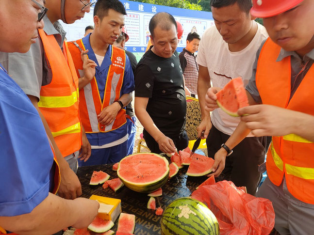 持續(xù)高溫大火爐,恰是大干正當時。為保證施工生產(chǎn)在高溫狀態(tài)下正常“運轉(zhuǎn)”,中鐵四局工程建設(shè)分公司甕開高速公路項目部工會采取多種措施,積極應(yīng)對酷暑天氣,積極開展“保障勞動權(quán)益、延長午休避高溫” 強力按下高溫“午休令”,采取“抓兩頭、歇中間”的方式,利用早晚搶抓快干,避免高溫時段作業(yè),錯峰施工,將中午11:00至15:00間不作業(yè),氣溫高于37℃天氣停止作業(yè),并多次開展送清涼慰問活動,備足防暑用品,宣講高溫防護、中暑急救、安全用電等知識,囑咐工人強化高溫作業(yè)的勞動保護意識,提高自我防護能力,確保一線員工身體健康和現(xiàn)場安全生產(chǎn)。