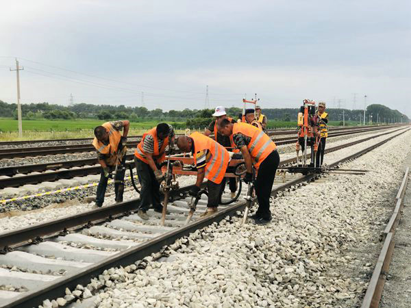 現(xiàn)場作業(yè)工人在進行線路搗固