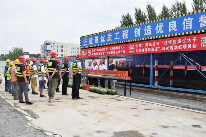 圖為公司總經(jīng)理諶銘一行到長春地鐵項(xiàng)目現(xiàn)場開展“送清涼”慰問目前,正是四公司開展“抗疫情、保增長、大干100天”關(guān)鍵時(shí)期,為了保證年度完成施工產(chǎn)值66億元,公司全體員工不分晝夜地奮戰(zhàn)在施工一線,戰(zhàn)酷暑、斗烈日,搶進(jìn)度。為此公司行政、工會(huì)積極開展了“抗疫保增促大干、關(guān)愛相伴送清涼”慰問活動(dòng),給一線員工送去了豐盛的“清涼大餐”,使全體員工深深地感受到來自組織的關(guān)心與關(guān)懷。