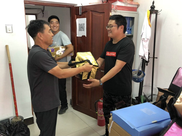 孟曉東在發(fā)放慰問品