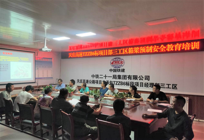 8月4日,中鐵二十一局四公司天莊高速公路項目部組織全體管理人員和箱梁預(yù)制勞務(wù)人員召開箱梁預(yù)制施工安全教育培訓(xùn)會。