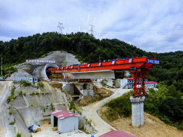 JQSS900B型可變式過隧架橋機在隧道口位置架橋畫面