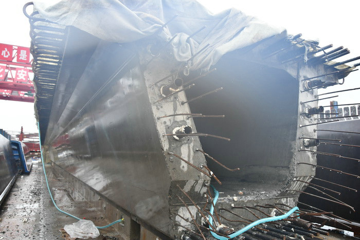 圖為首片箱梁拆模