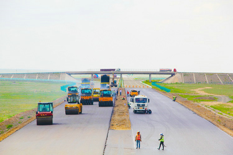 當前京新高速路面底基層已完成88㎞(單幅),占設計量的76.6%,水穩(wěn)層已完成72㎞(單幅),占設計量的62.7%;瀝青下面層完成71㎞,占設計量的58%。瀝青上面層已完成18km(單幅),占設計量的14.7%。