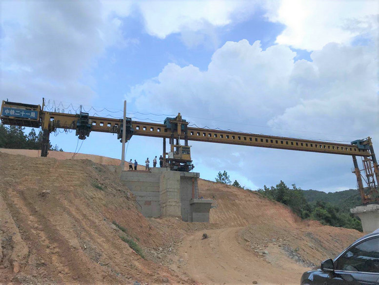 興泉鐵路為單線鐵路,中鐵二十一局四公司興泉鐵路項(xiàng)目管段全長26.045km,設(shè)計(jì)橋梁15座,梁32m梁124孔、24m梁21孔,共145孔;隧道9座。鋪架方向由寧都縣向石城縣,從月腳下大橋開始鋪架,一直鋪架至燕珠坑大橋,計(jì)劃用時(shí)70天。