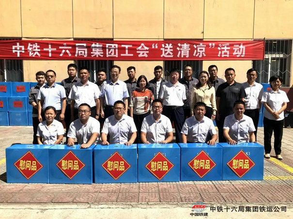 本站訊 ( 韓朝 ) 8月25日上午,中鐵十六局集團(tuán)公司工會(huì)女工委主任、組宣生產(chǎn)部部長蔣曉芬,權(quán)益綜合部部長朱京啟一行在七夕佳節(jié)之際,來到鐵運(yùn)公司沙蔚鐵路運(yùn)營指揮部開展“送清涼”慰問活動(dòng)。鐵運(yùn)公司黨委書記夏吉?jiǎng)?,工?huì)副主席、女工委主任陳紅云等參加慰問。