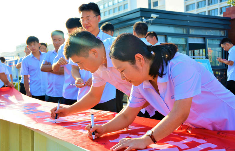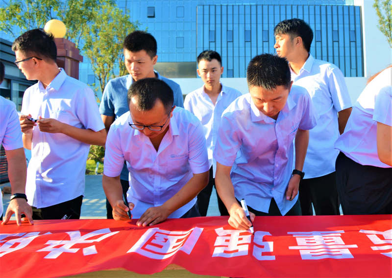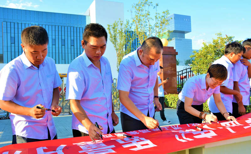 項(xiàng)目部40余人在項(xiàng)目技術(shù)負(fù)責(zé)人的領(lǐng)誓下莊嚴(yán)宣誓:“我是一名中國(guó)中鐵員工, 我工作的安全和質(zhì)量,關(guān)系到企業(yè)的發(fā)展和榮譽(yù)!我鄭重承諾: 忠誠(chéng)企業(yè)、 恪盡職守、 珍愛(ài)生命、 鑄造精品!我堅(jiān)決做到: 遵守規(guī)章制度、遵守規(guī)范規(guī)程、 遵守勞動(dòng)紀(jì)律, 不出事故、 不出次品、 不留隱患!我將以實(shí)際行動(dòng), 確保企業(yè)生產(chǎn)安全、 產(chǎn)品優(yōu)質(zhì)。”一句句鏗鏘有力的誓言道出了每位員工對(duì)企業(yè)安全和自身安全的莊嚴(yán)承諾。宣誓活動(dòng)結(jié)束后,大家進(jìn)行了簽名活動(dòng)。