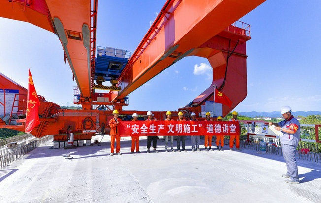 湖北黃岡訊 安全是鐵路施工的頭等大事。9月3日下午,由中鐵三局線橋黃黃項目黨支部、工會組織以“安全生產(chǎn)文明施工”為主題,道德講堂進施工一線的形式走進管段黃岡方向余家灣特大橋箱梁架設現(xiàn)場,與參建員工共同弘揚安全理念,分享道德感悟,強化安全思想教育,營造安全、文明施工文化良好氛圍,促進企業(yè)安全生產(chǎn)工作順利開展。