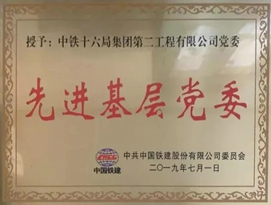 2019年下半年,二公司黨委獲股份公司先進基層黨委授牌
