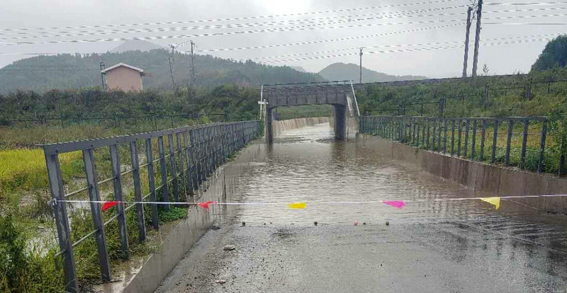 受第九號(hào)臺(tái)風(fēng)“美莎克”影響, 9月3日11時(shí)20分,連接黑龍江省著名旅游景點(diǎn)帽兒山景區(qū)的濱綏鐵路K96框構(gòu)橋,因持續(xù)強(qiáng)降雨導(dǎo)致周邊的山水倒灌,短短十幾分鐘積水半米多深水漫路面,危及行人和車輛通行安全。中鐵二十三局二公司哈牡電氣化項(xiàng)目部立即啟動(dòng)防汛應(yīng)急預(yù)案,安全員趙建國(guó)帶隊(duì)緊急趕往現(xiàn)場(chǎng),迅速封鎖框構(gòu)橋兩側(cè)道路,拉起警戒繩、設(shè)立告示板,勸返車輛和行人。