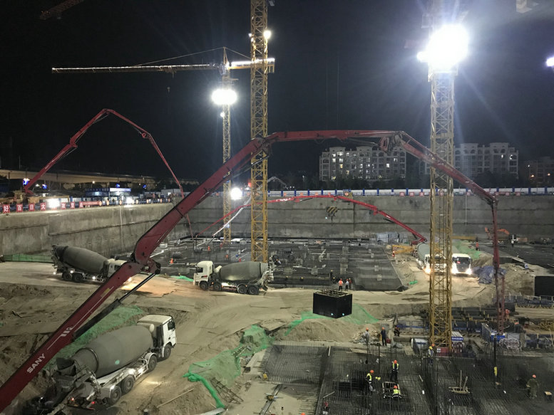 3.中鐵絲路總部項(xiàng)目部燈火通明緊張進(jìn)行1#樓筏板澆筑