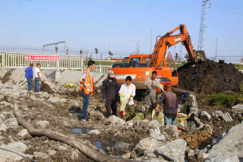早在進(jìn)入雨季和汛期之前,哈佳鐵路項目部就積極謀劃防洪度汛應(yīng)急預(yù)案,成立以項目經(jīng)理為組長的防洪渡汛應(yīng)急小組,結(jié)合現(xiàn)場環(huán)境,對汛期施工安全技術(shù)、現(xiàn)場防護(hù)管理措施等方面建立包保制度并跟蹤監(jiān)控,并嚴(yán)格執(zhí)行集團(tuán)公司、公司、當(dāng)?shù)卣姆篮橹噶?,暢通?lián)絡(luò)渠道,定期匯報情況,有針對性地制定防洪渡汛措施。